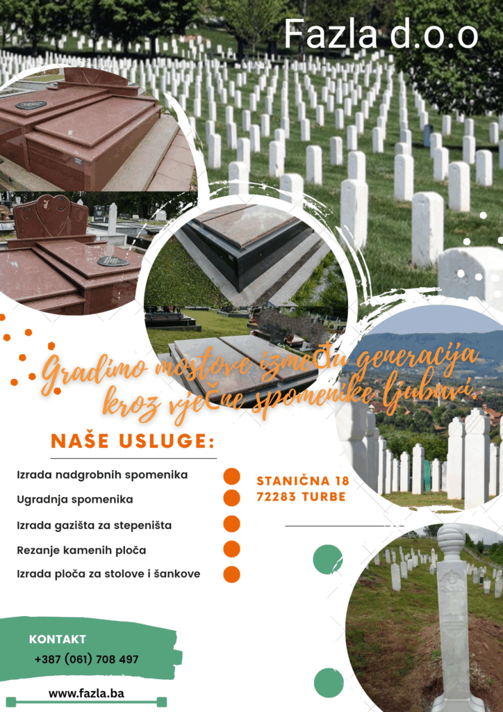 “Fazla d.o.o” – vodeća kamenorezačka radnja sa porodičnom tradicijom – specijalizirana je za izradu nadgrobnih spomenika i memorijala, te pruža sve vrste usluga u obradi kamena. Radimo na području Travnika i cijele BiH, s pažnjom na detalj i trajnu kvalitetu.